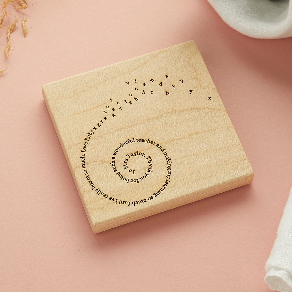 Personalised Teacher Thank You Wood Coaster Create Gift Love